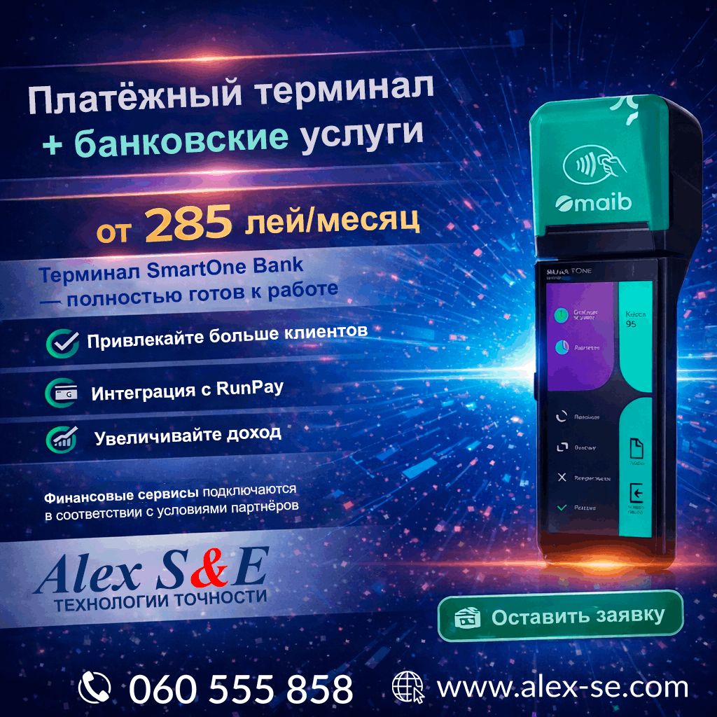 Acum, afacerea dumneavoastră poate beneficia de dispozitivul performant SmartOne Bank(link: https://alex-se.com/ro/products/item/66e981bd3c1ed66bba000254) , cu serviciul RunPay integrat, în condiții exclusive: pentru doar 285 de lei pe lună. Aceasta nu este o simplă chirie – după 20 de luni, aparatul de casa trece în proprietatea dumneavoastră deplină. Pachetul „totul inclus” vă garantează suport tehnic și disponibilitate imediată de lucru imediat după recepționare.