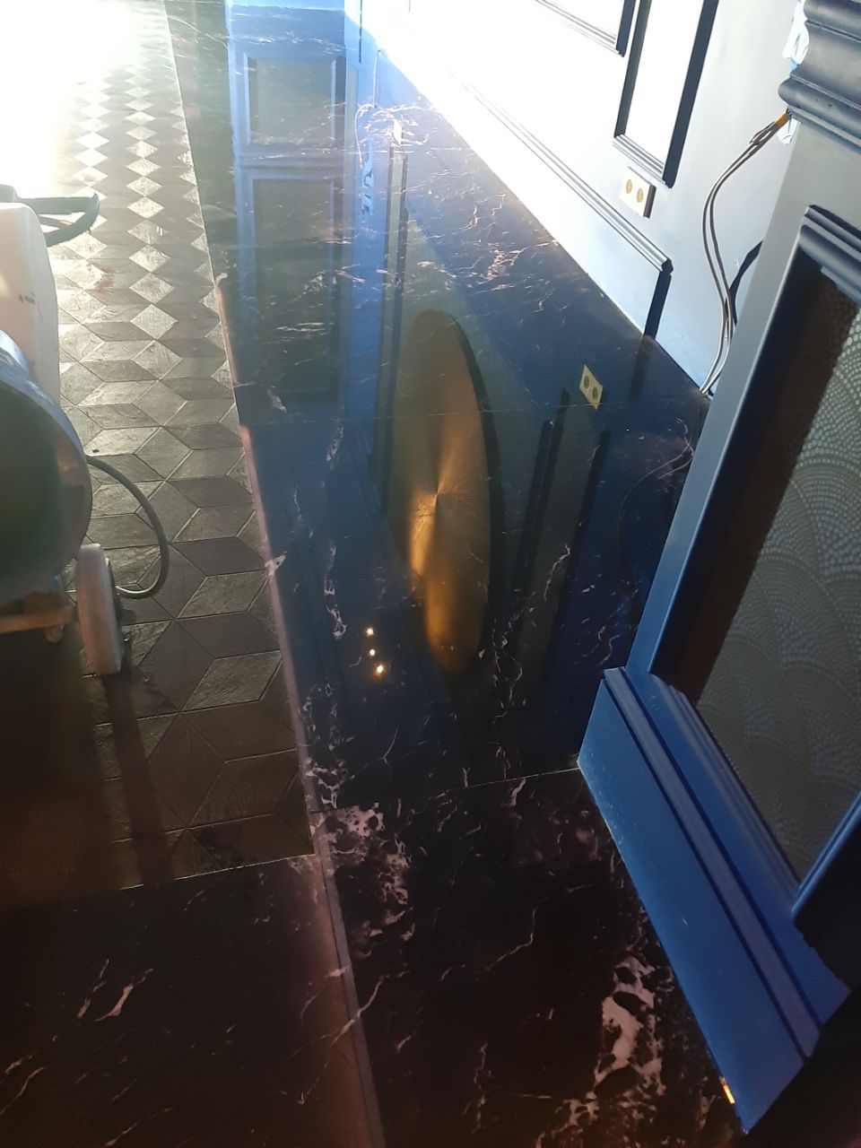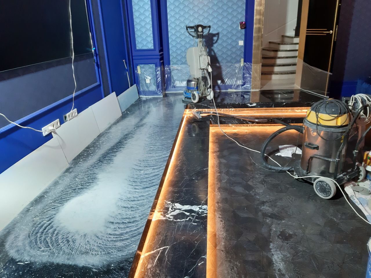 Indepartarea zgarieturilor, a petelor mate si restaurarea stralucirii oglinzii pe marmura neagra