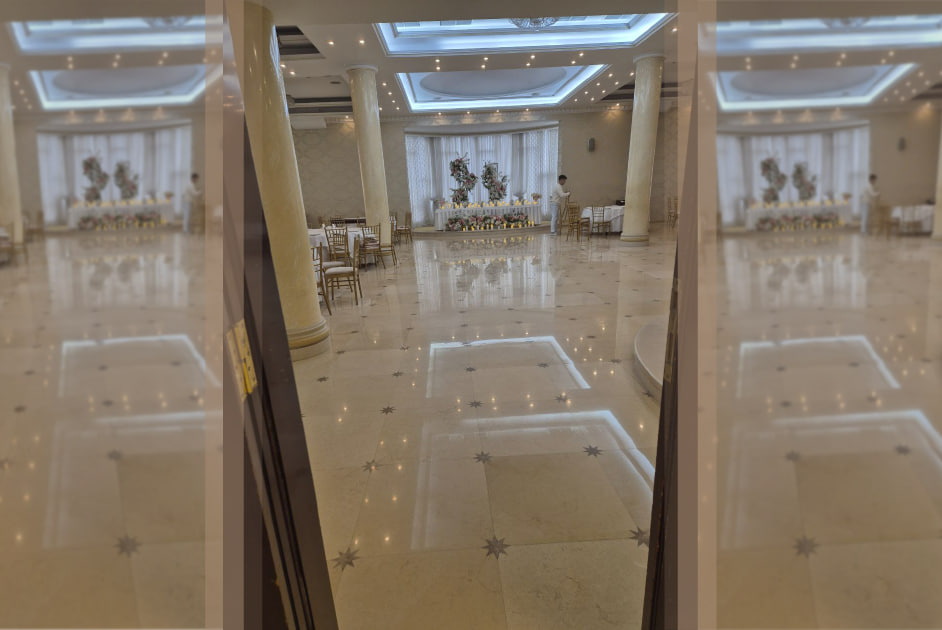 Lustruirea și restaurarea podelei de marmură. Novas Banquet Hall