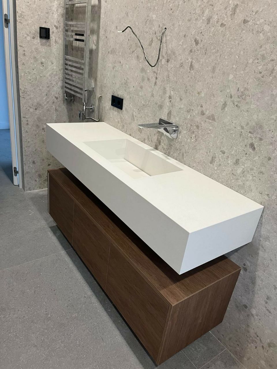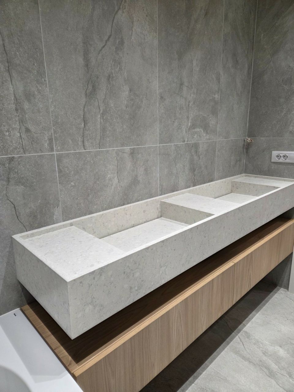 Blatul devine elementul central al băii, oferind un aspect sofisticat și modern.
