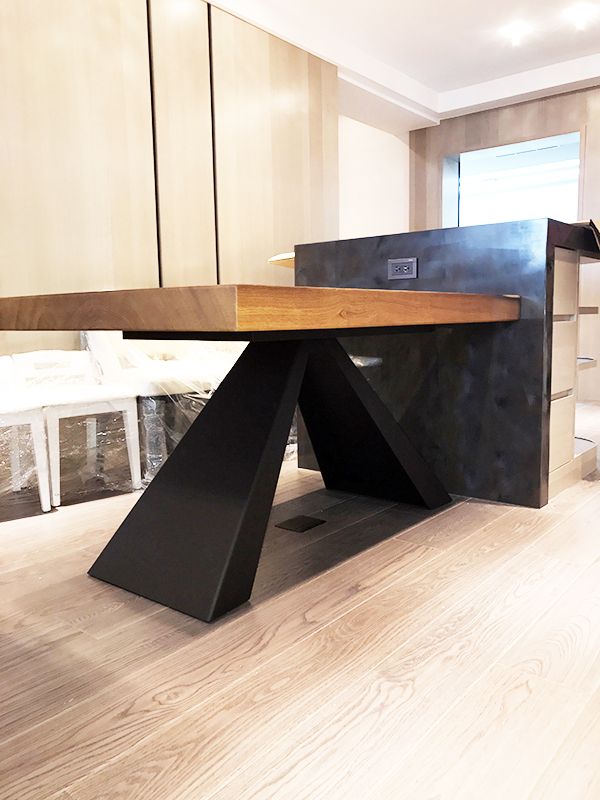Confecționăm carcase metalice pentru mese (suporturi) pentru diferite formate: de lucru, de dining, bar, mese de conferință. Îmbinăm metalul cu lemnul, sticla și alte materiale.