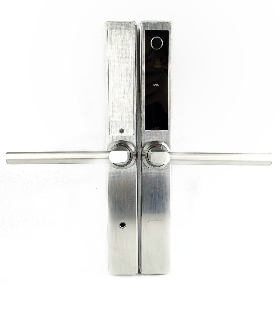 PES David – încuietoare electronică universală cu reductor pentru ușa de intrare, cu cititor biometric extern.