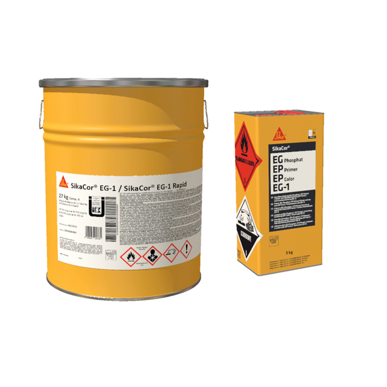 În combinație cu grunduri și straturi de top, SikaCor® EG-1 este un sistem de acoperire rezistent la apă și chimic pentru protecție durabilă împotriva coroziunii, categoria de corozivitate C5 ridicată conform ISO 12944-2.