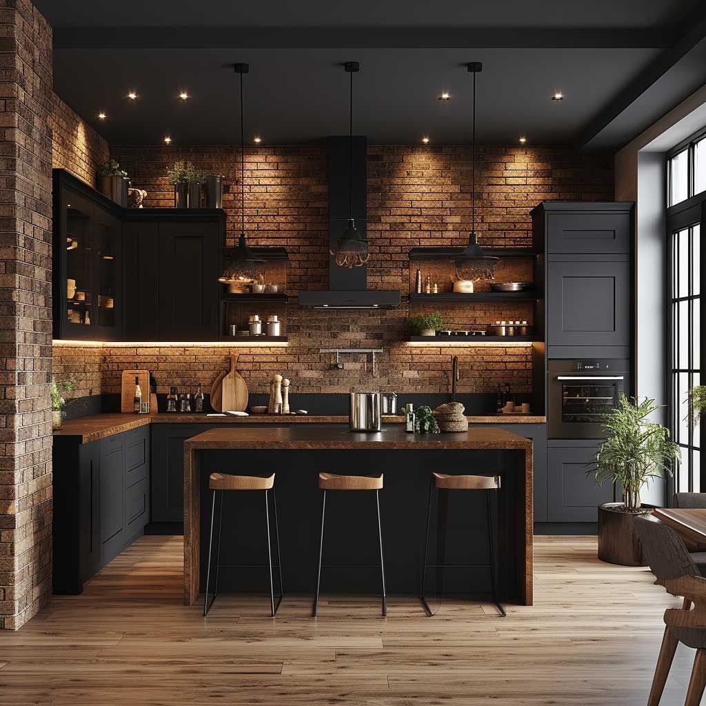 - Лофт – кирпичная кладка, металл, открытые коммуникации. Отлично подходит для кухни и гостиной.