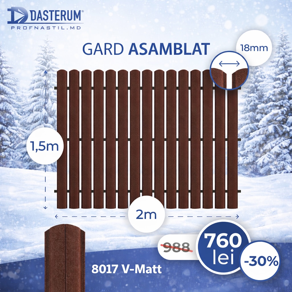 Компания продолжает зимнюю акцию на секции собранного забора. Покупателям доступна металлическая штакетная продукция премиум-класса со скидками до 50%. В ассортименте представлены пять цветовых вариантов и три типовых высоты: 1,2 м, 1,5 м и 1,7 м.