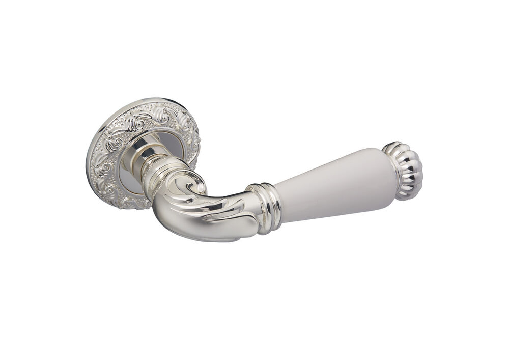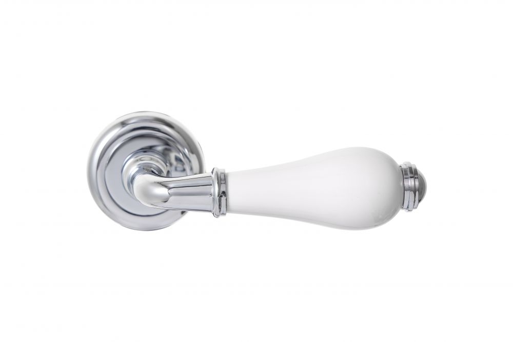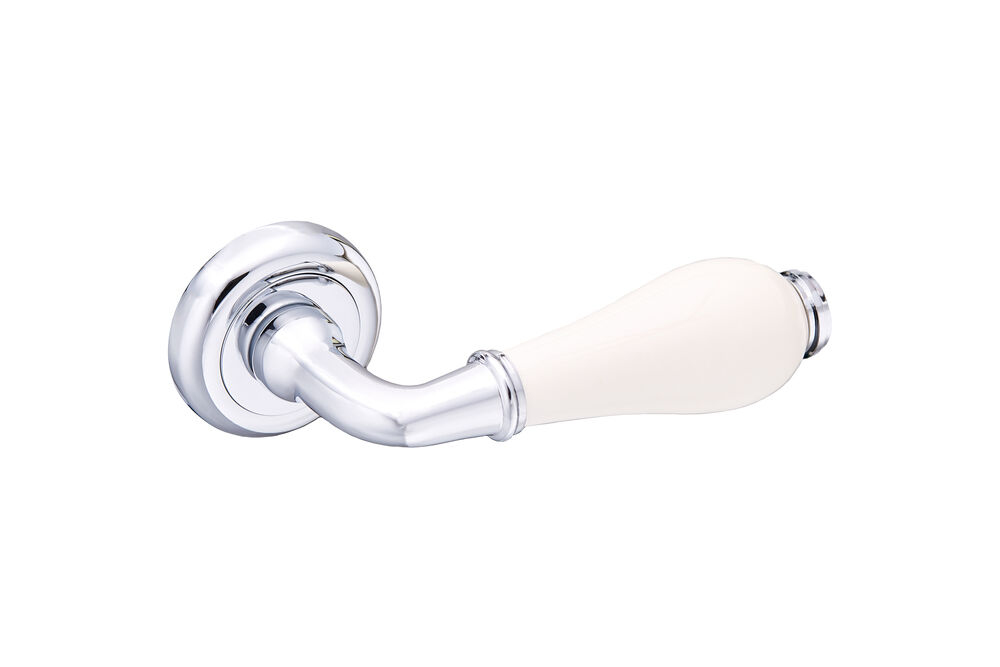 Ручки для дверей на круглой розете Серия Zn HYDRARGYRUM CP/White хром блестящий/белый