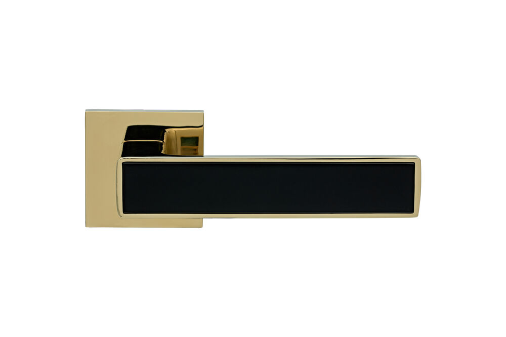 Ручки для дверей на квадратной розете Серия Zn NIKEL PVD/Black золото блестящее / черный