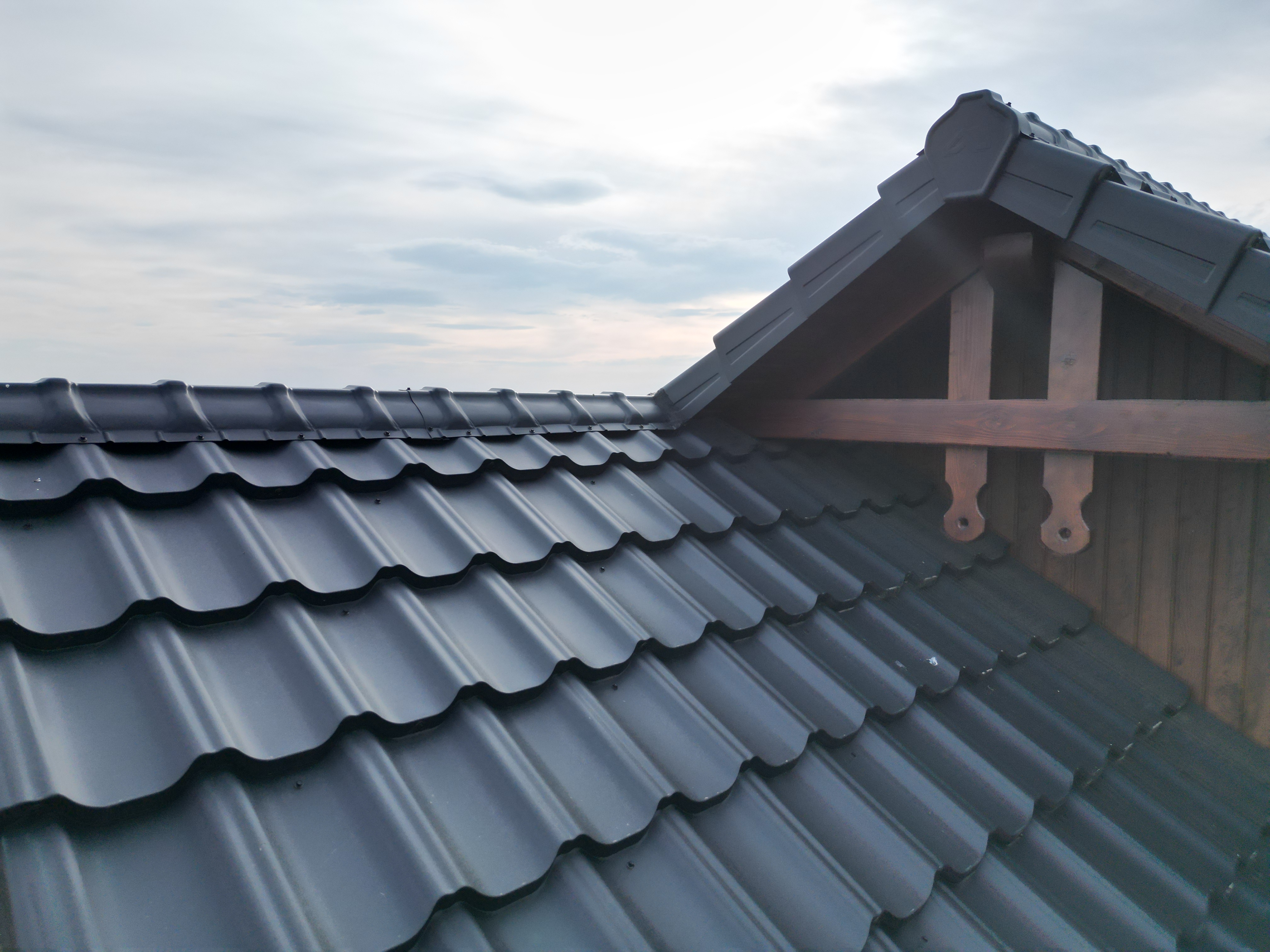 - Лёгкость монтажа. Модульная черепица идеально подходит для сложных крыш — компактные элементы удобно транспортировать и укладывать. Даже при нестандартной геометрии кровли монтаж занимает минимум времени.
