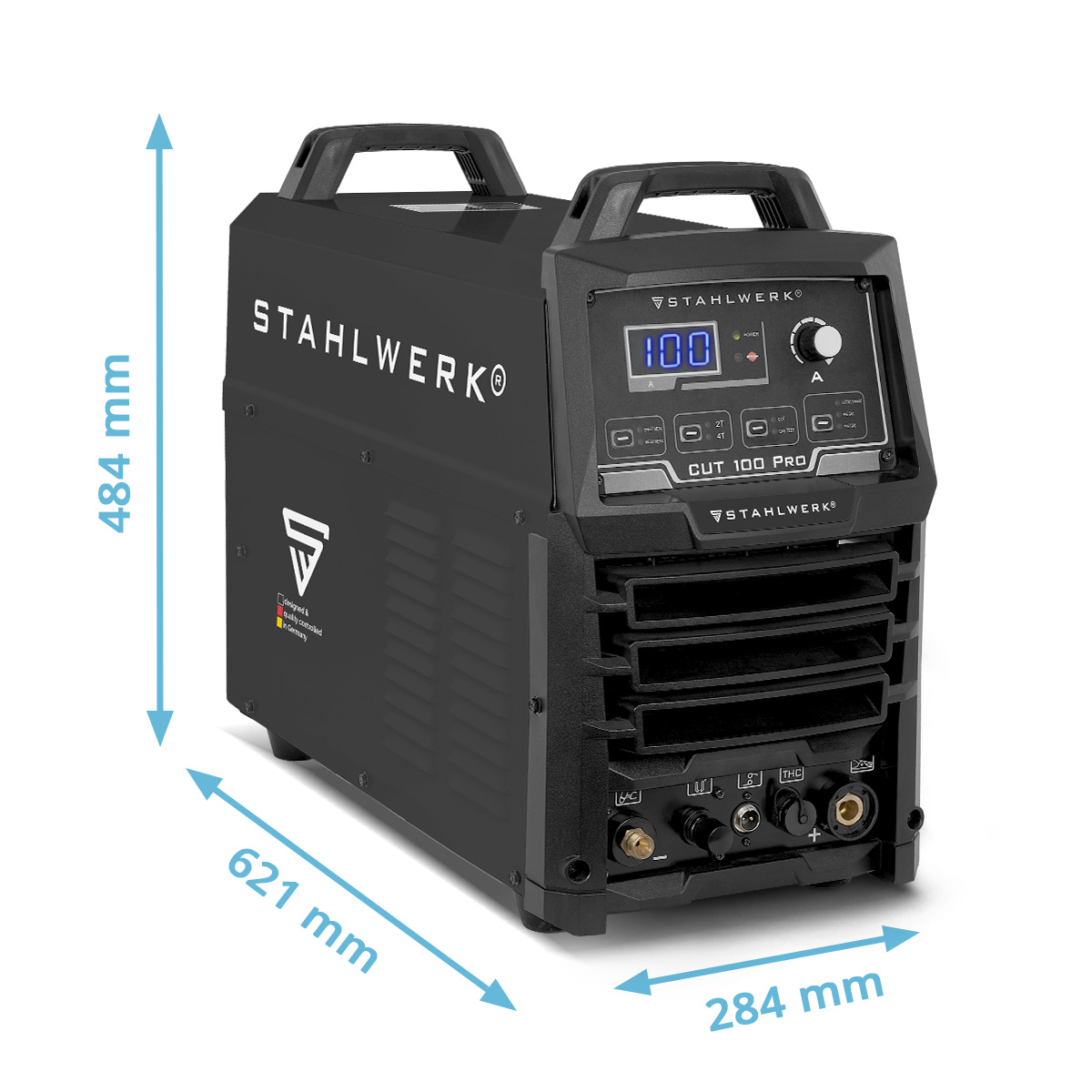 Мощный плазморез STAHLWERK CUT 100 Pro с режимами 2T/4T обеспечивает мощный ток 100 ампер и имеет точную высокочастотную (ВЧ) пилотную систему зажигания для первоклассного качества работы. В зависимости от материала, резка может производиться до 44 мм (мягкая сталь ST37 до 44 мм, V2A или V4A до 32 мм, алюминий до 27 мм). Плазменный резак подходит для всех распространенных проводящих металлов, а также для окрашенного листового металла и антикоррозийной пленки. Ток резки можно плавно регулировать от 20 до 100 ампер. Все параметры легко считываются с четкого цифрового дисплея. Различные значения можно быстро установить с помощью интуитивно понятного меню. Устройство имеет интеллектуальную систему охлаждения и защиту от перегрева, а также легко транспортируется, весит всего 28,7 кг. Еще одна особенность плазменного резака — регулировка высоты горелки для использования с ЧПУ-контроллером. Напряжение дуги измеряется через 2-контактное соединение THC и передается на контроллер для поддержания постоянной высоты горелки. Плазменный резак CUT 100 Pro также имеет режимы работы «СЕТЧАТЫЙ МЕТАЛЛ» и «ЛИСТОВОЙ МЕТАЛЛ». Режим «СЕТЧАТЫЙ МЕТАЛЛ» особенно подходит для заготовок с сетчатой структурой или прерываниями, где дуга может на короткое время терять контакт. Режим «ЛИСТОВОЙ МЕТАЛЛ» рекомендуется для непрерывных листов, где гарантируется равномерный рез. Время предварительного и последующего обдува воздухом можно установить индивидуально на устройстве. Более длительное время последующего обдува улучшает охлаждение и, таким образом, способствует увеличению срока службы изнашиваемых деталей. Плазменный резак STAHLWERK CUT 100 Pro поставляется с полным комплектом принадлежностей..