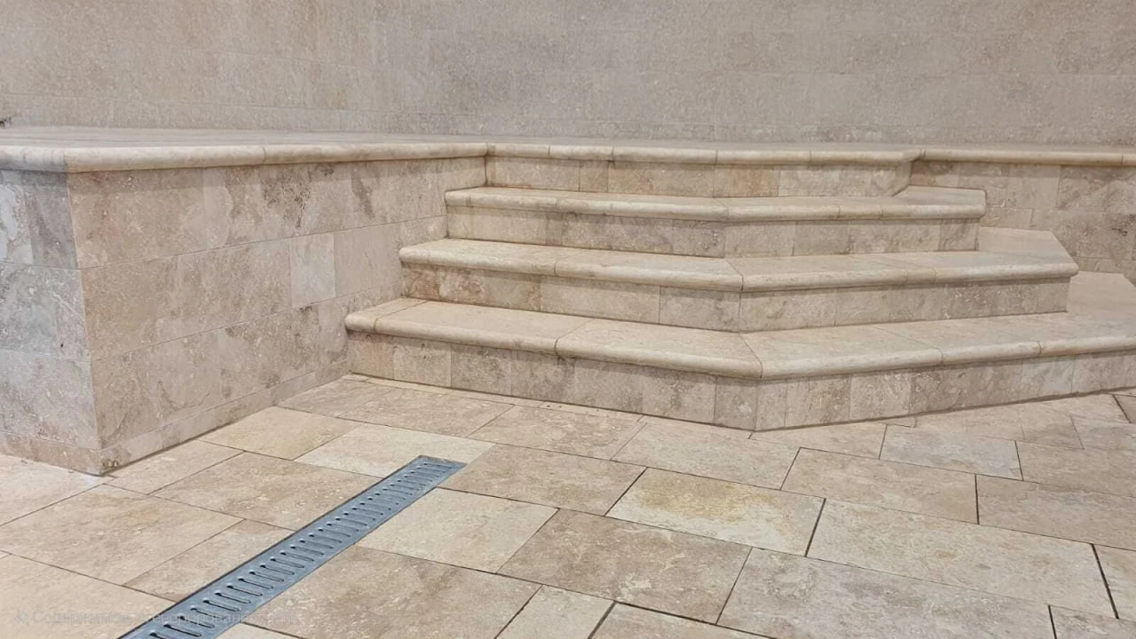 Борт для бассейна из травертина Classic beige