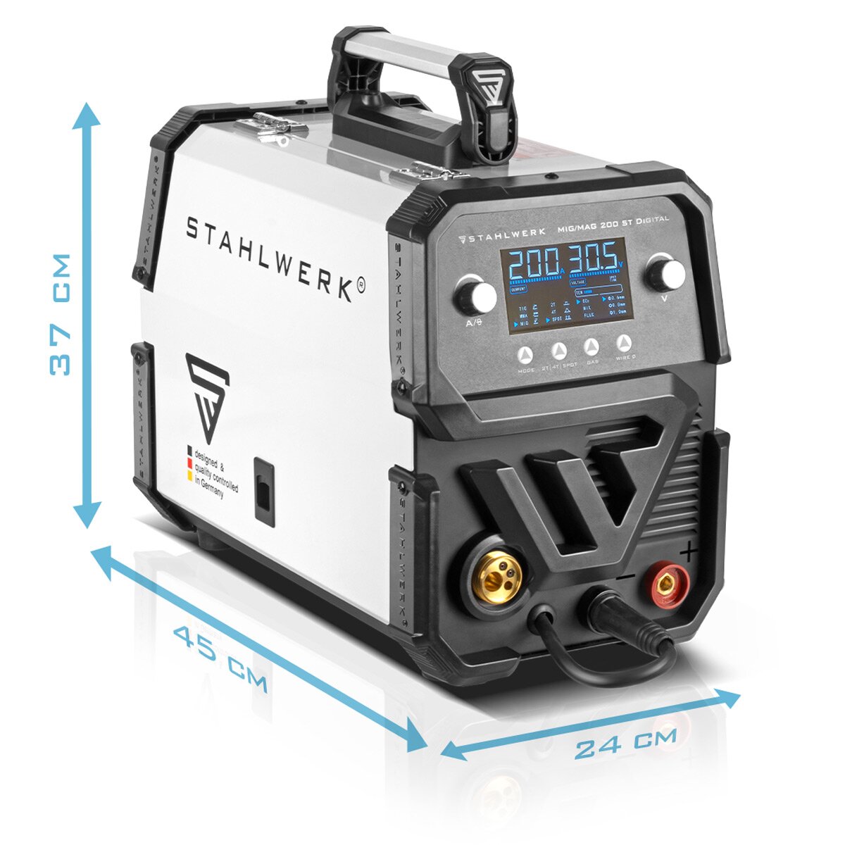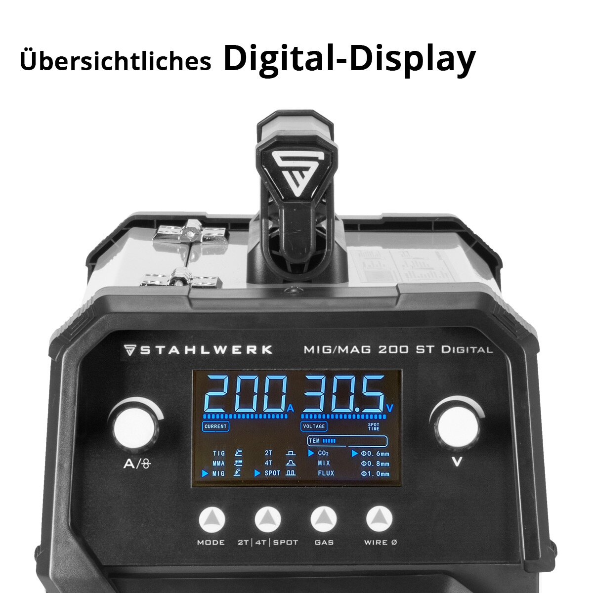 Сварочный аппарат STAHLWERK MIG MAG 200 ST Digital имеет синергетический механизм подачи проволоки, работает с током до 200 А и подходит как для сварки MIG MAG, так и для сварки MMA/ARC. Кроме того, можно использовать порошковую проволоку FLUX, поэтому возможна сварка без защитного газа. Параметры сварки легко считываются на четком цифровом дисплее. Различные режимы можно быстро настроить с помощью интуитивно понятного меню. Инверторы, оснащенные современной технологией IGBT последнего поколения, обеспечивают выдающиеся сварочные свойства благодаря более высокому КПД и снижению энергопотребления. Благодаря оптимальным рабочим параметрам универсальные сварочные аппараты можно использовать практически для любых требований и всегда обеспечивать идеальные результаты работы. Помимо интеллектуального охлаждения со встроенной защитой от перегрева, сварочный аппарат оснащен синергетической системой подачи проволоки.
