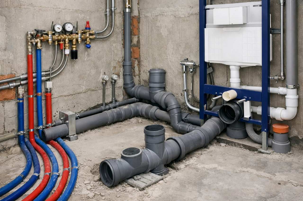 Выполняем полную разводку труб холодной и горячей воды, а также канализации. Гарантируем правильную схему, надёжность и долгий срок службы системы.