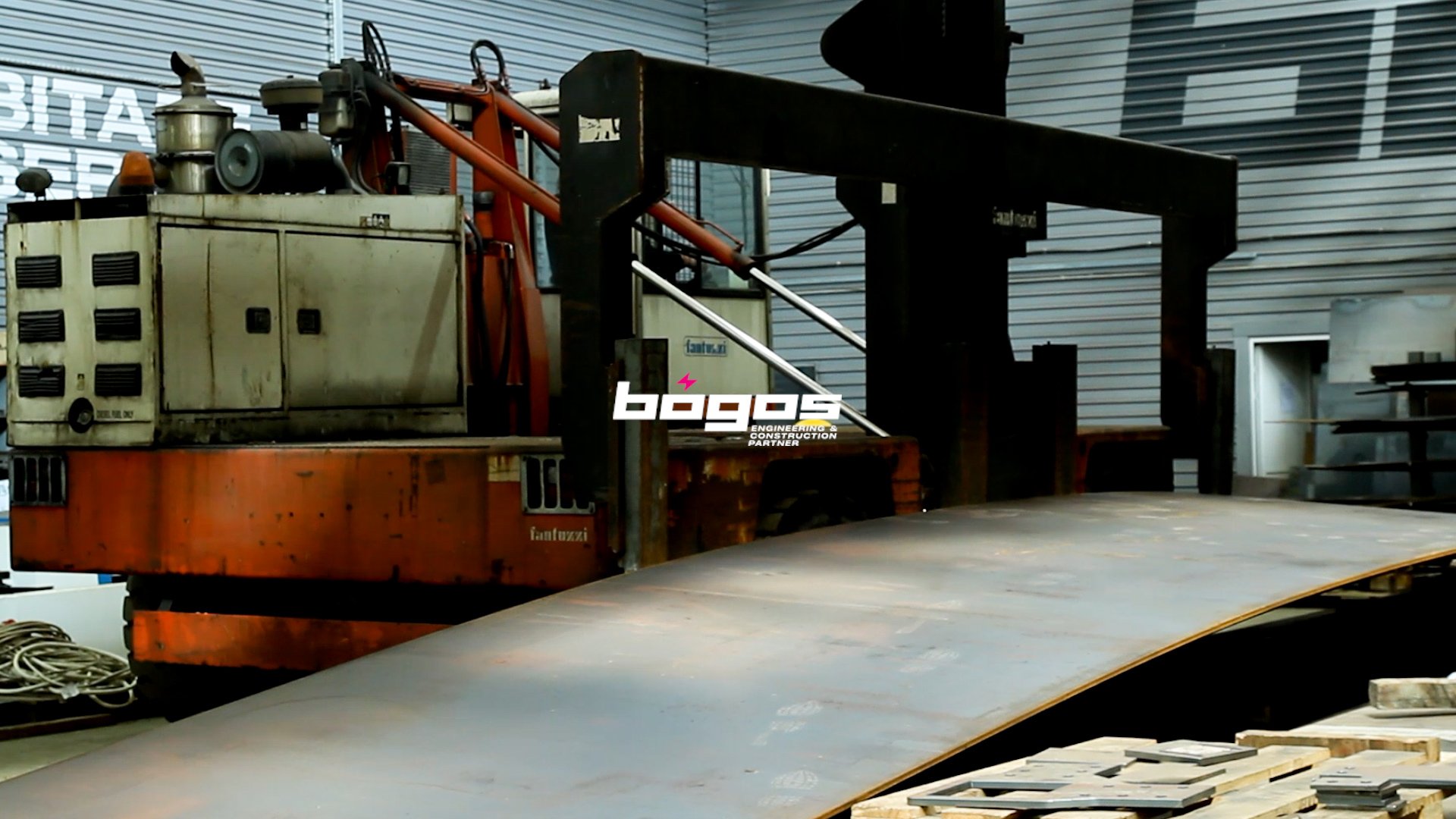 Сгибание металлических элементов заключается в их сгибании до тех пор, пока они не будут спрессованы. Этот процесс на заводе BOGOS осуществляется с помощью пресса с ЧПУ, который представляет собой два тандемных пресса длиной 4 метра каждый и усилием прессования 320 тонн каждый, которые соединяются в линию или по отдельности, а также с помощью другого специализированного оборудования.