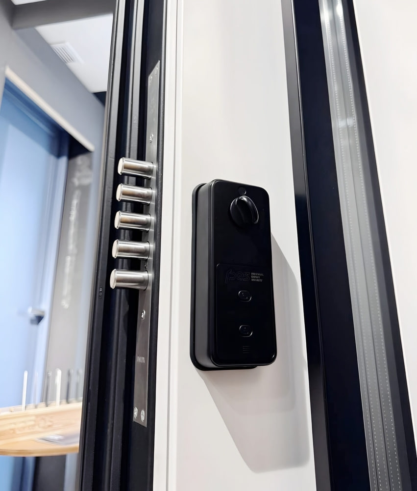 PES David – универсальный электронный замок-редуктор на входную дверь с внешним биометрическим считывателем.